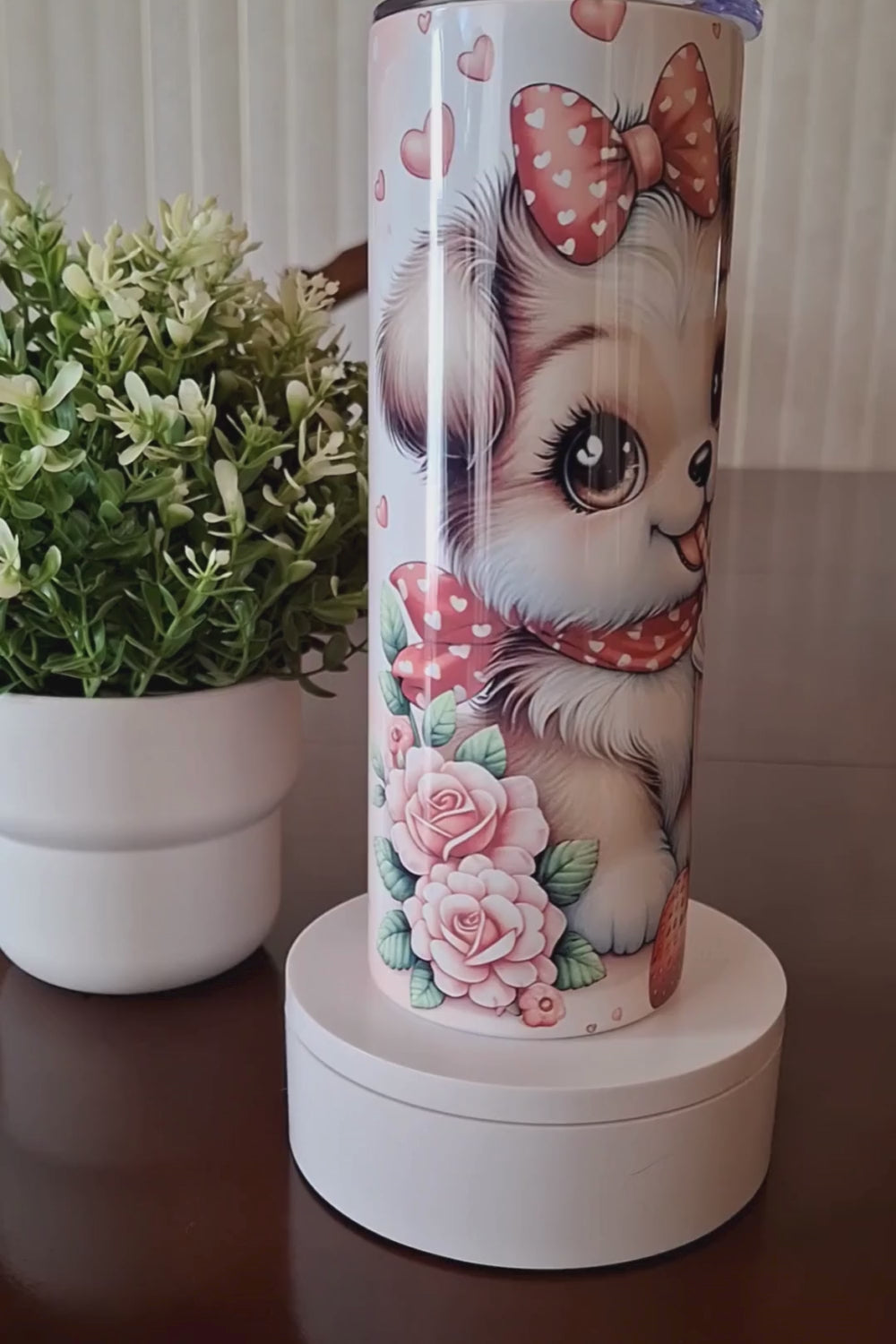 Adorable pups sharing a shake featured on our Strawberry Pups tumbler. Can't get cuter that this. Handmade 20 oz tumbler comes with a stainless steel straw and a cleaning brush. Instructions also included.